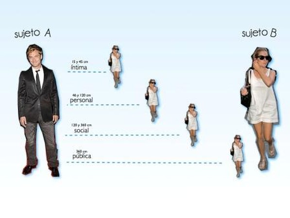 Las relaciones íntimas son evidentes al observar el lenguaje corporal y el uso del espacio personal. Sólo observa a dos jóvenes hablando y coqueteando y verás que sus cuerpos están en un espacio personal muy cercano. La mayor parte de este lenguaje corporal es inconsciente, pero sin embargo es más revelador acerca de su relación real que el lenguaje verbal. Si tú quieres entender realmente la relación entre dos personas simplemente estudia su lenguaje corporal y las distancias entre ellos. |